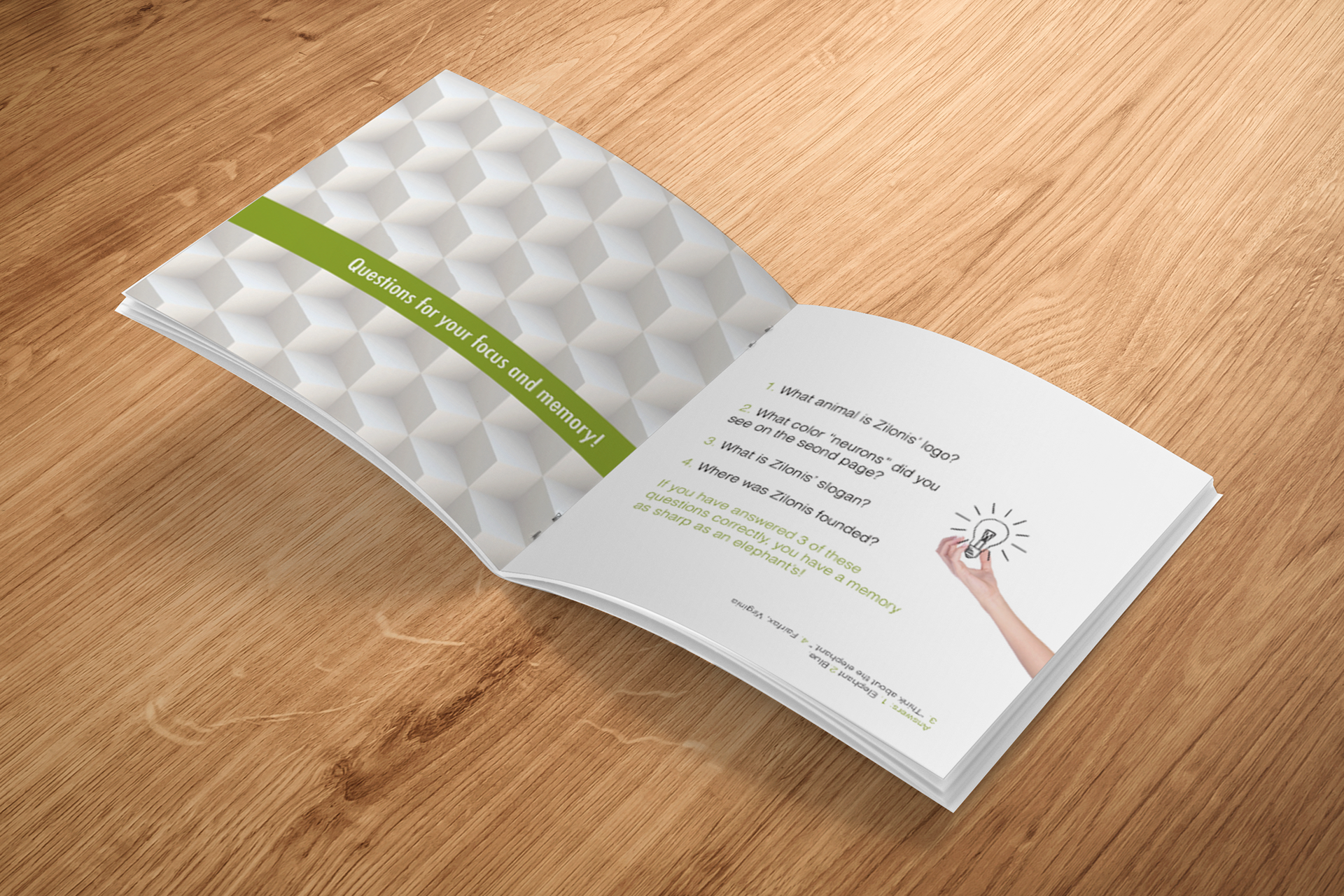 Zilonis is a fictional company specializing in memory research and studies. I picked the elephant for the logo because of its reputation for having an amazing memory. // Apps: Illustrator, InDesign